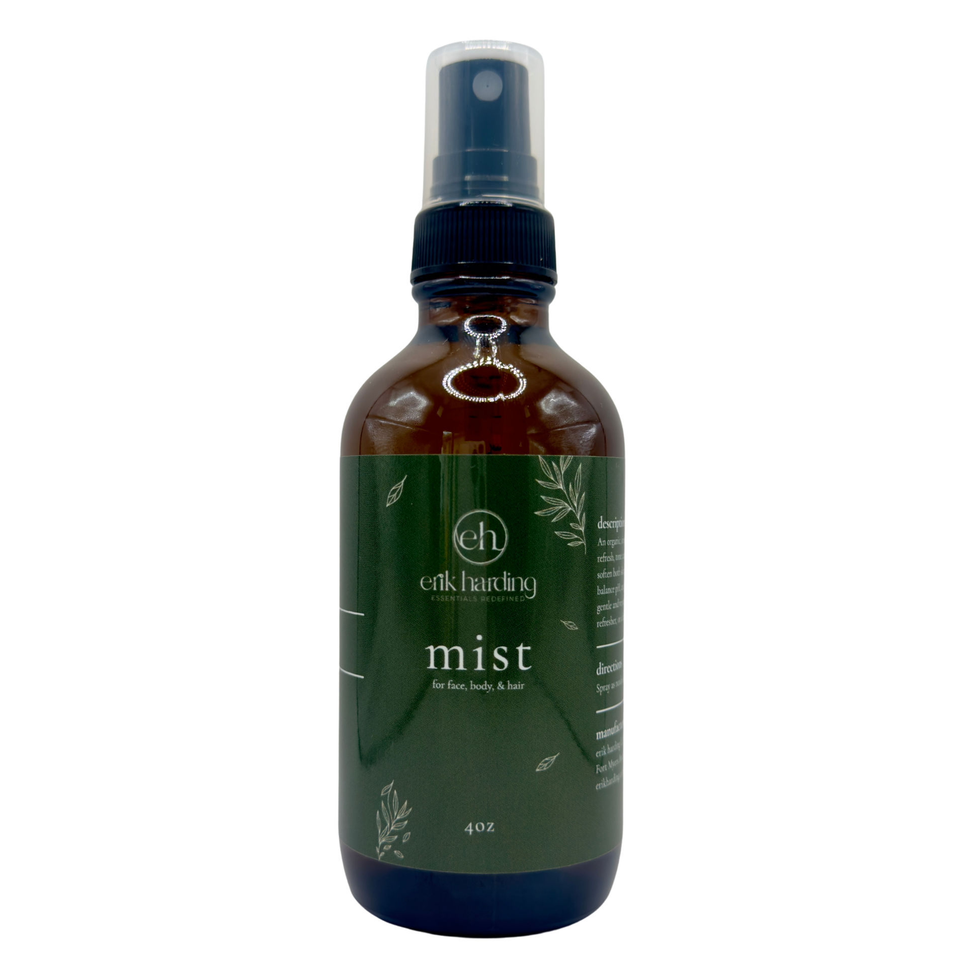 An organic, single-ingredient rose water spray designed to refresh, tone, and hydrate all skin types and hair. It helps soften both skin and hair. It also helps soothe irritation, balance pH, and provide lightweight hydration. Naturally, gentle and versatile, it can be used as a facial toner, mid-day refresher, or a hair and scalp mist.